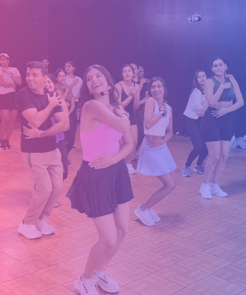Our classes are a fun-filled, high-energy hour featuring 10-12 Bollywood songs. We start with a quick warm-up, then dive into the main set. For each song, Arushi will guide you through a few easy-to-follow, repetitive moves designed to get your heart rate up while you jam out to the music. It's all about having fun and getting a great sweat session—no complex choreography to memorize!